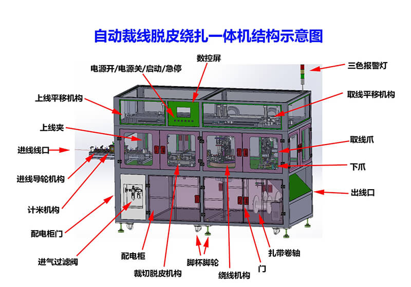 大圆圈双扎型自动裁绕剥皮绕线扎线一体机CY-CPRT-02TH 主要配件: